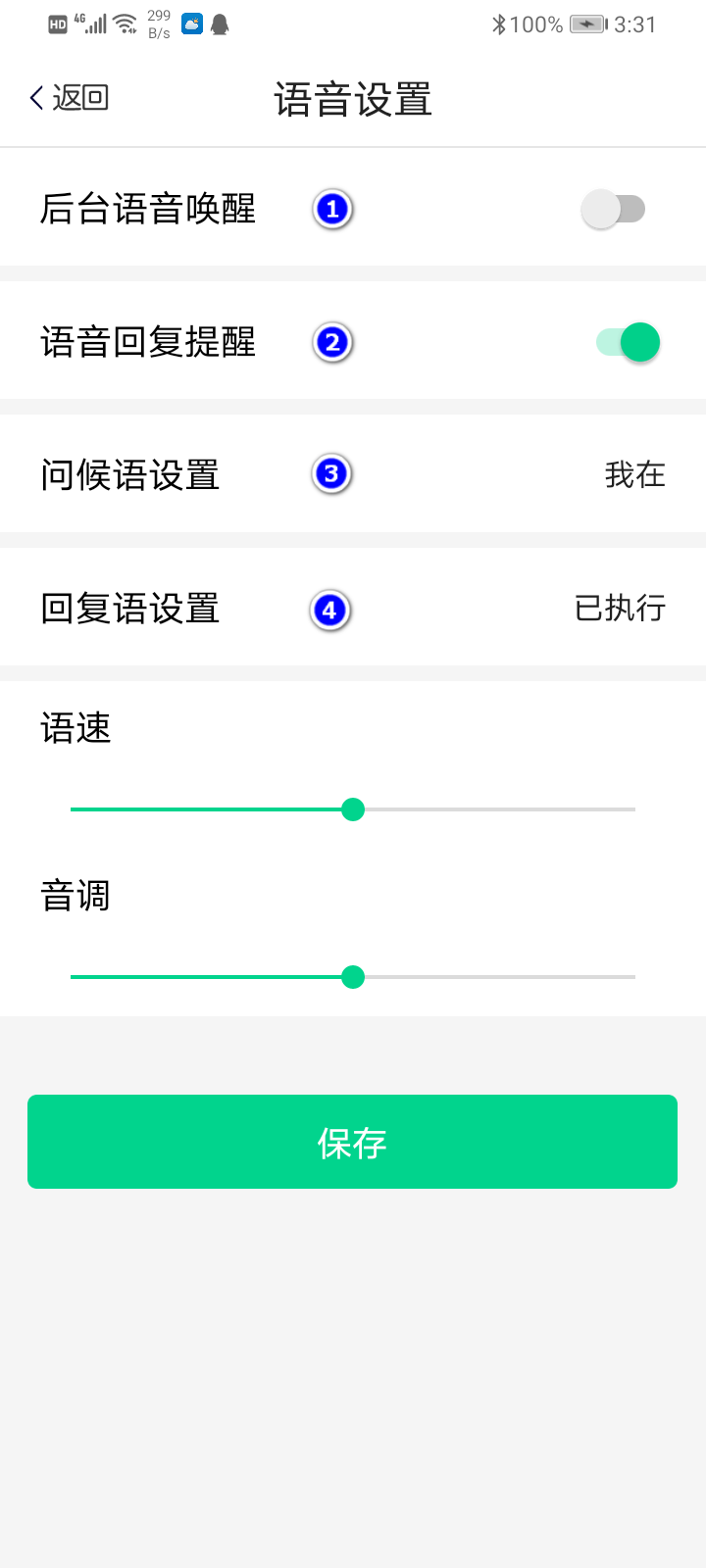2.设置当使用语音时,系统是否有回复